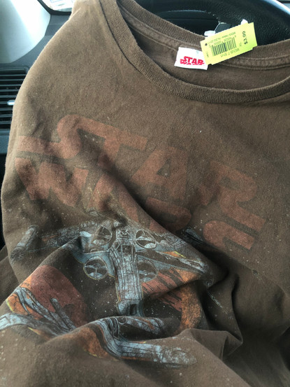 The shirt - Is soooo dope!! Besides my Harley Davidson shirt that I thrifted I am obsessed with this Vintage Star Wars tee and I check to make sure it is still in my closet everyday. The last picture is from right after I found it at arc for $4!